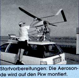 Abhebgeschwindigkeit beschleunigt wurde. Die Aerosonden haben