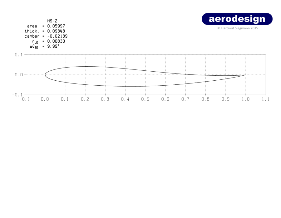 Für diese Neuveröffentlichung unter der neuen Benennung HS-3 habe ich die Originalzeichnung elektronisch eingescannt und in ordentlicher Qualität vektorisiert. Den Nasenbereich habe ich geringfügig modifiziert, um eine Unstetigkeit zu bereinigen, die numerische Relevanz hat. Aber ich habe selbstverständlich auch die ursprünglich publizierten Koordinaten sowie die Originalzeichnung zum Download bereitgestellt. So viel in aller Kürze zur Entwicklung vom HSNa 3/0009 über HS-3.0/9.0 zum HS-3, der hoffentlich endgültig letzten Version dieses Profils.