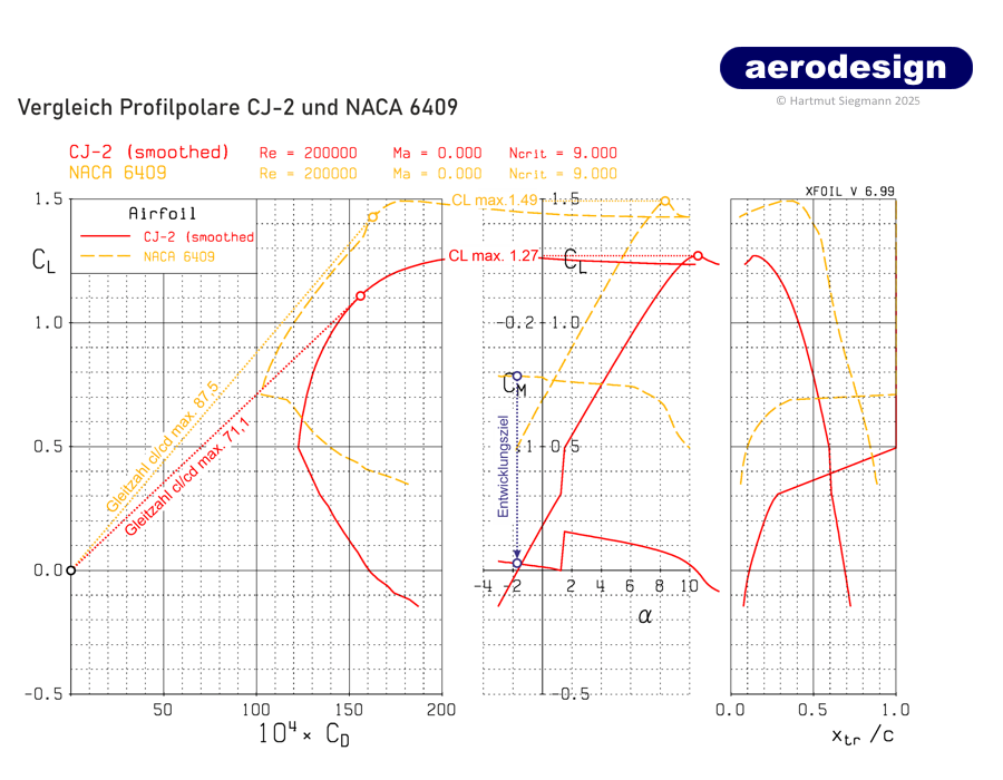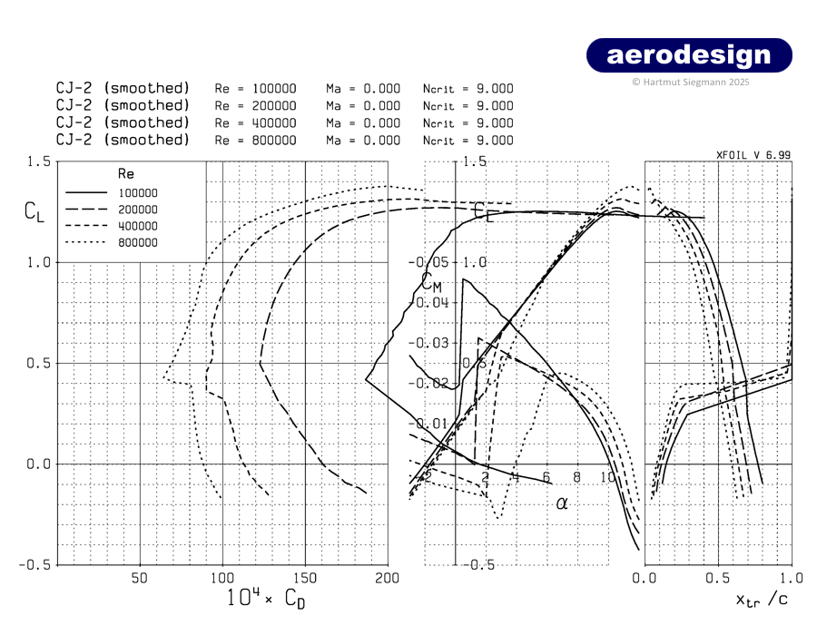 | CJ-1 | -1.48 | 9.50 | 0.0676 | 1.58 | Brett-NF, niedrige Flächenbel., Hangflug | |