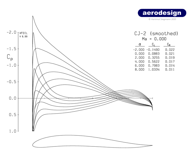 Das AR 2610-S80 ist vielleicht der leistungsfähigste Entwurf der AR-Serie, weil es bereits ab Re-Zahlen von 100.000 betrieben werden kann. Leider sind die Profilkoordinaten des Originals Pflegestufe II: Ein Profil so grob, als wäre es in einer dunklen Winternacht mit der Axt aus einer deutschen Eiche gehauen worden. Kein Wunder, Alfons Rieger hat es vom Ritz 3-30-10 abgeleitet. Nach einer umfangreichen Grundüberholung in der virtuellen Profilschreinerei zeigt das AR 2610-S80 (smoothed) seinen wahren Charakter: Ein Profil mit Feedback für den Piloten!